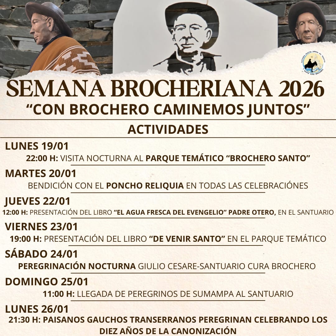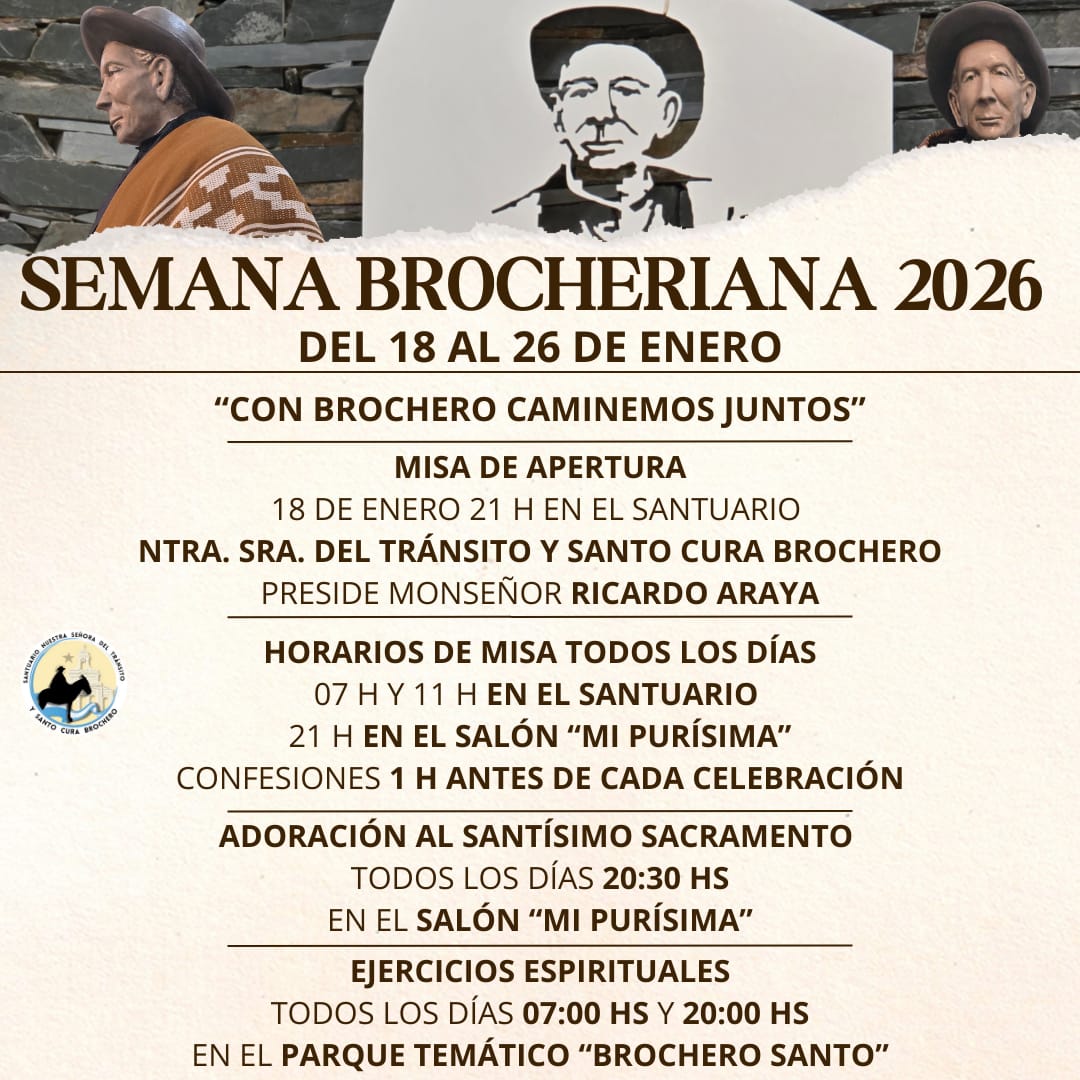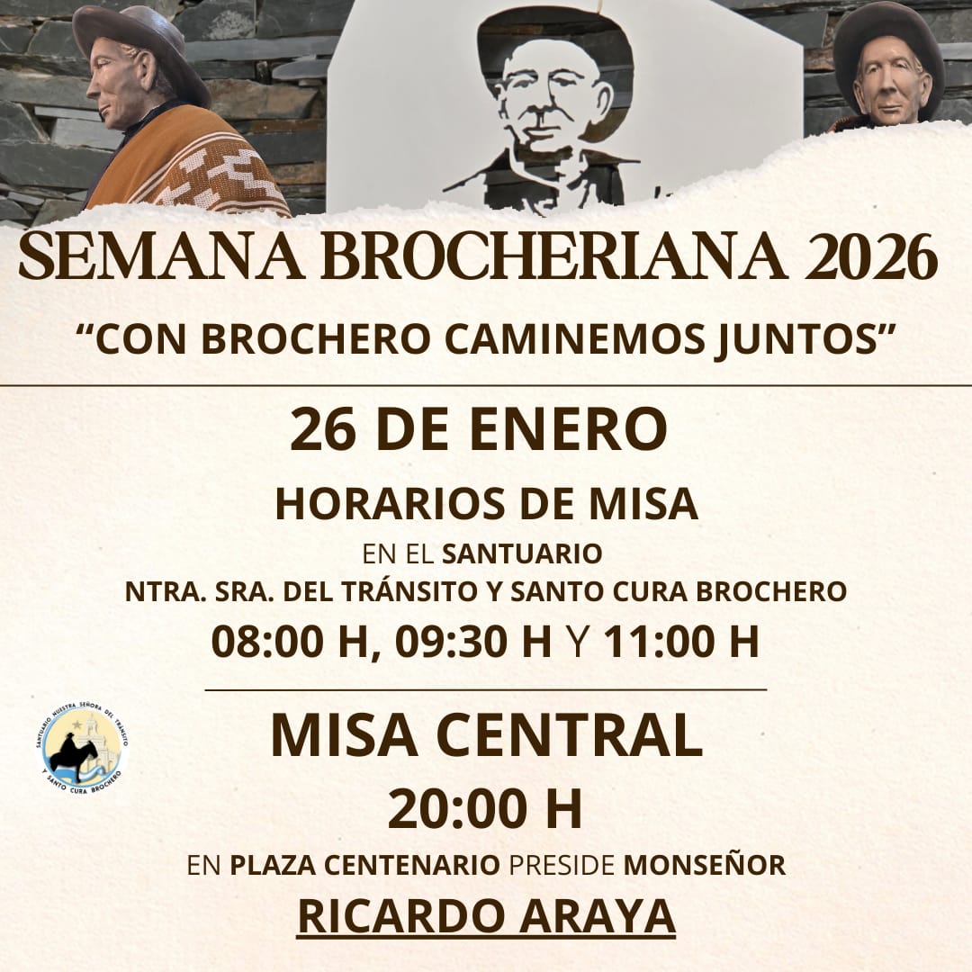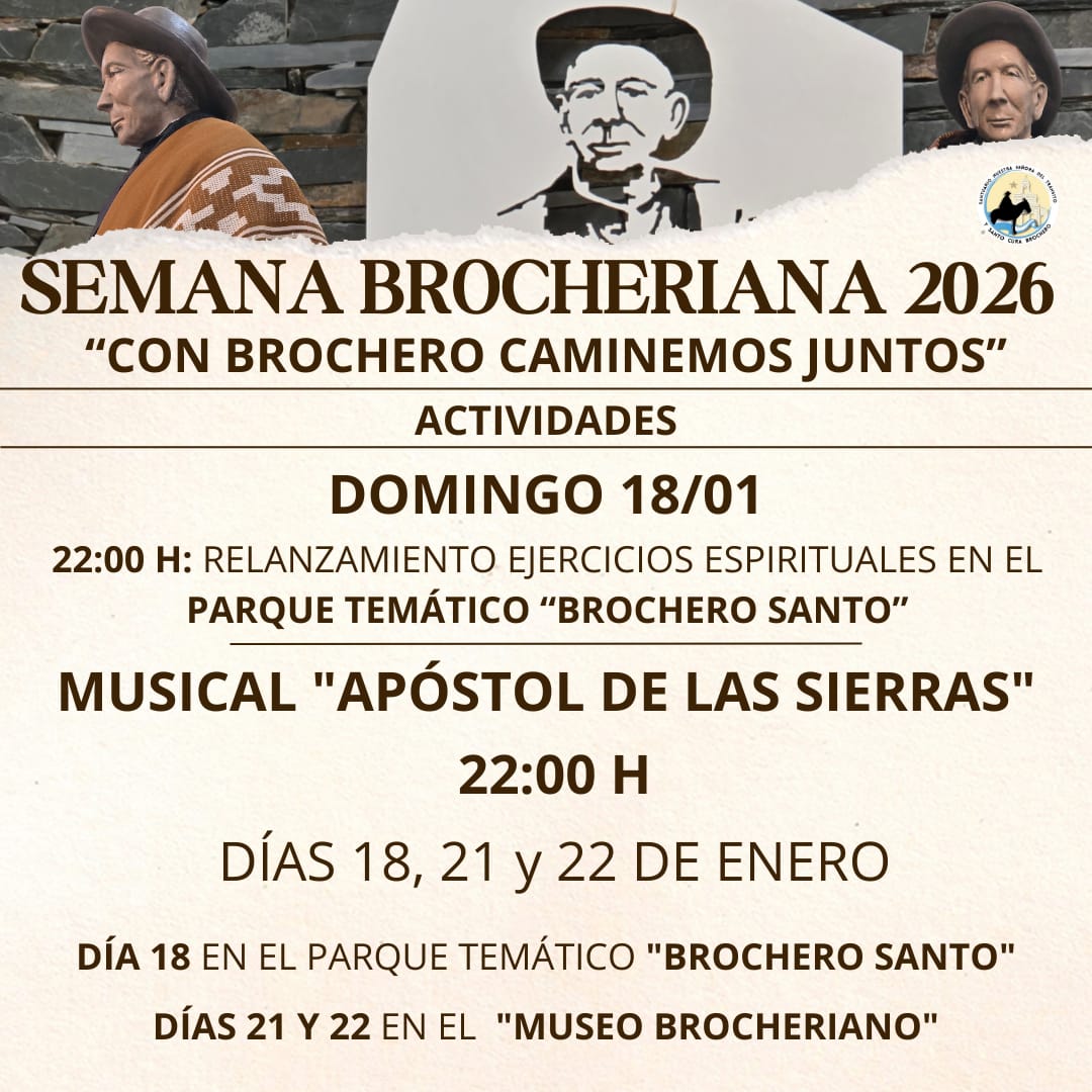 SEMANA BROCHERIANA 2026Por Grupo Vultur / 5 enero, 2026 Semana Brocheriana 2026La Semana Brocheriana 2026 se realizará del 18 al 26 de Enero y, como todos los años, se ha organizado una variedad de actividades litúrgicas. A continuación, se presenta la programación prevista: